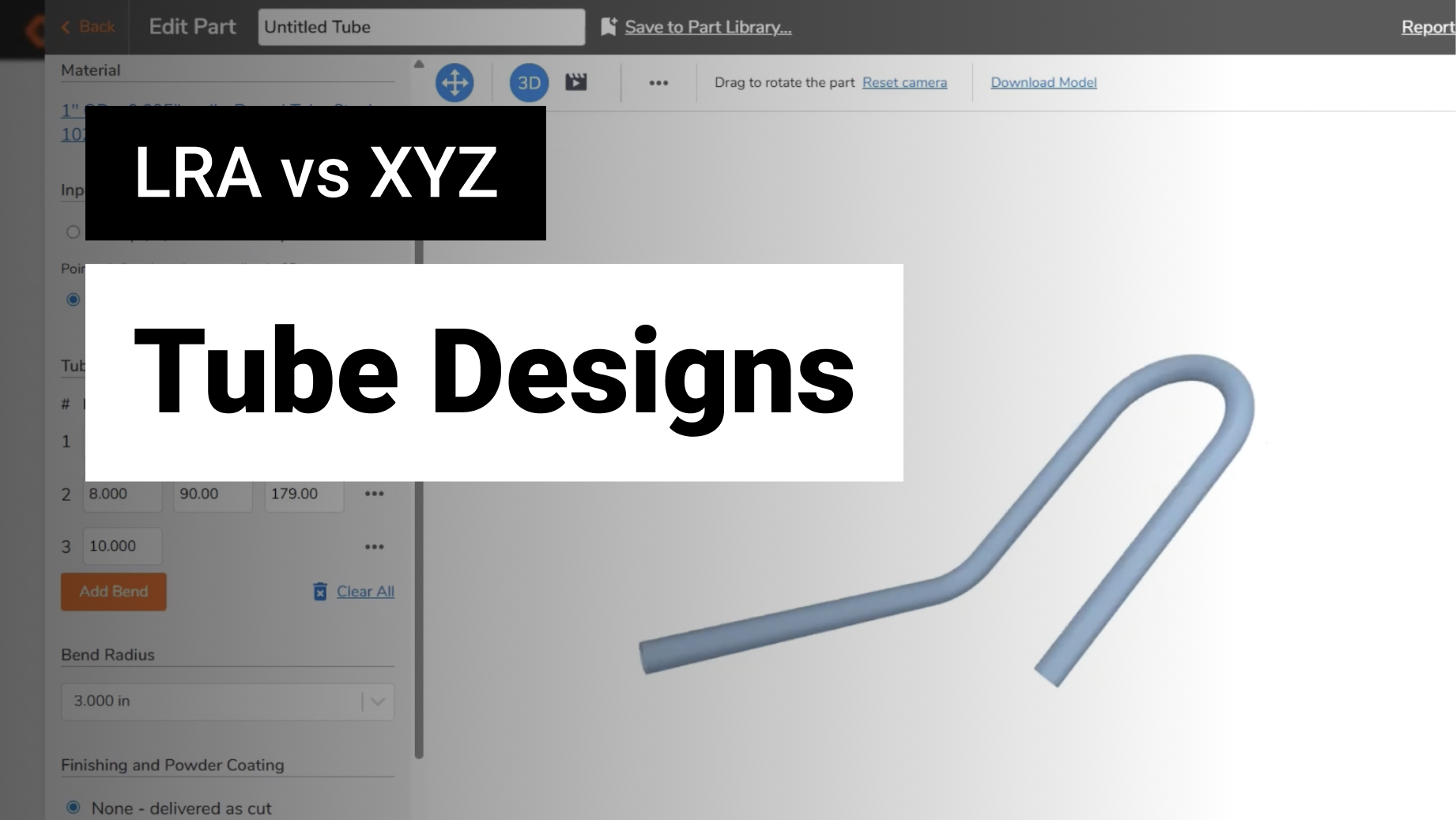 In this video, Caleb compares the advantages and disadvantages of using standard XYZ coordinates versus Length-Rotation-Angle (LRA) inputs to accurately design bent tube parts.